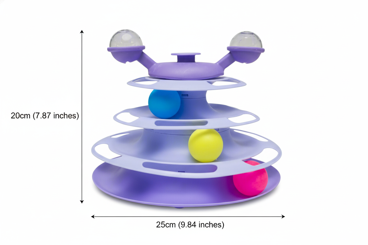 • 🐾 3 Tiers of non-stop rolling ball action
