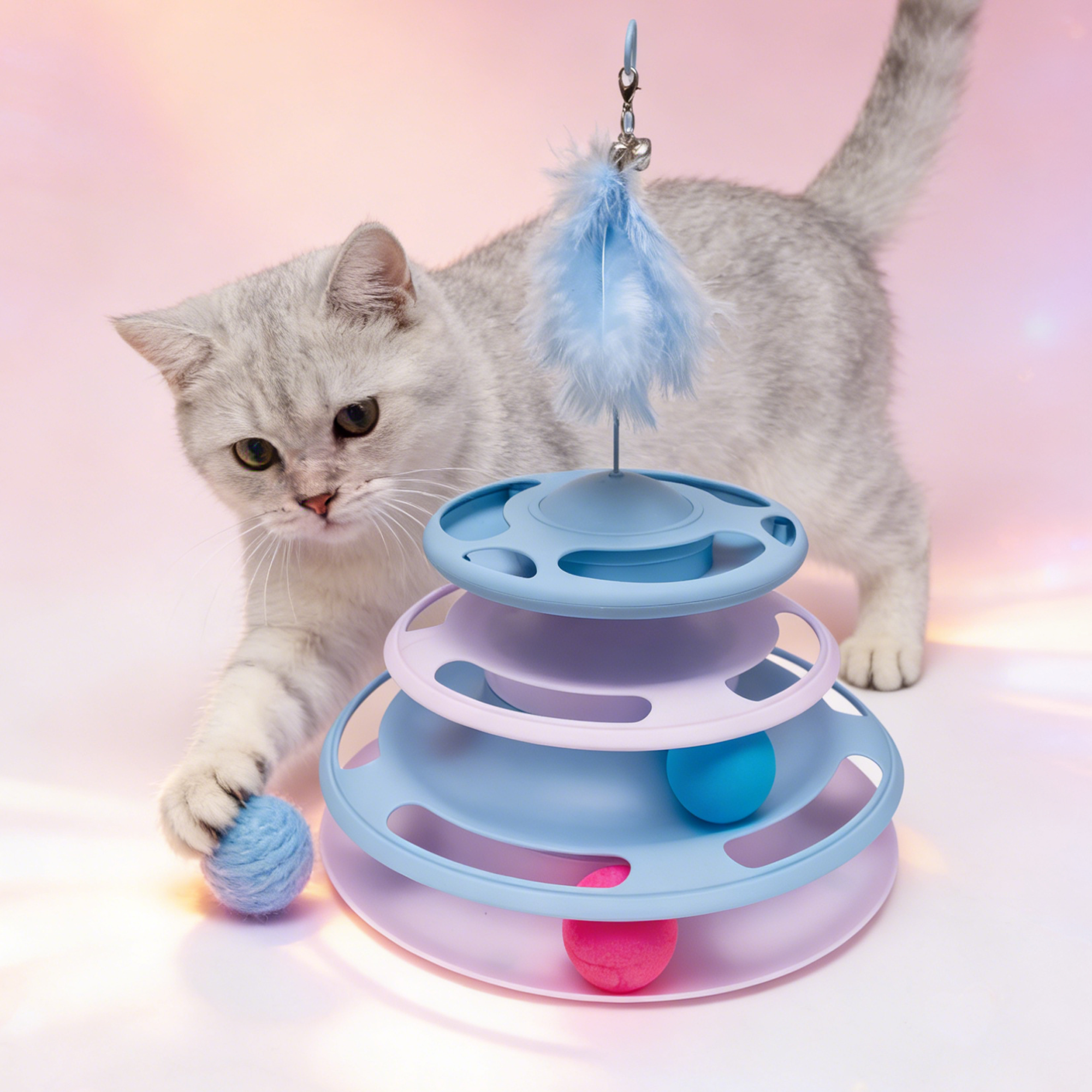 • 🐾 3 Tiers of non-stop rolling ball action